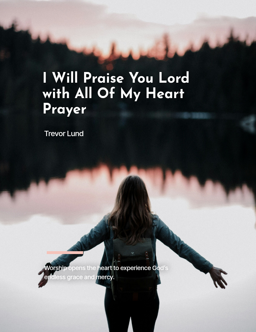 In "I Will Praise You Lord with All Of My Heart Prayer," Trevor Lund invites readers to experience a deep, heartfelt connection with God through vibrant praise and gratitude. This reflective journey highlights the beauty of creation, the comfort of divine promises, and the assurance of God’s unwavering presence in times of trouble. With a spirit of joy and reverence, Lund encourages us to rejoice in God's goodness and to trust in His transformative power in our lives.